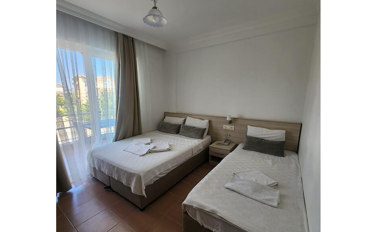 Our hotel has a total of 14 rooms, including 4 double rooms, 9 triple rooms, and 1 family room for four people. Each of our rooms has a spacious balcony, fire alarm system, air conditioning, television, mini fridge, hairdryer, and Wi-Fi internet service. Our hotel has a parking lot monitored by 24/7 security cameras.